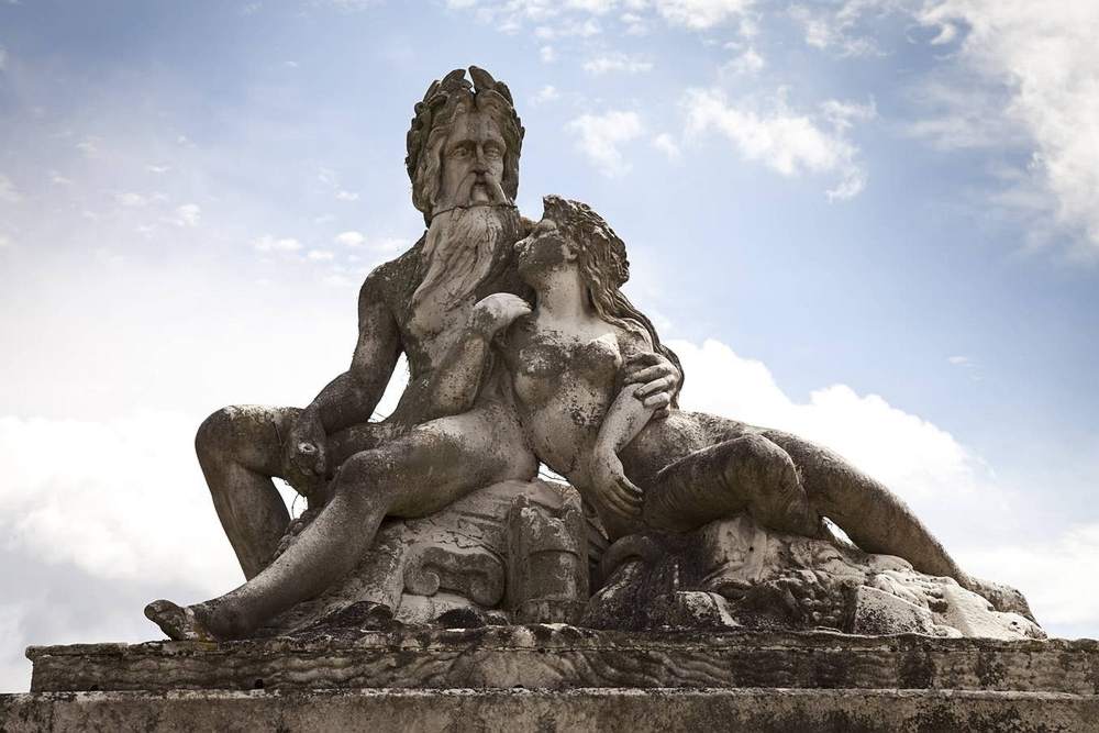 Wenn man Flüsse personifiziert, geschieht das meist im Einklang mit ihrem grammatischen Geschlecht: Vater Rhein und Mutter Mosel am Kurfürstlichen Schloss in Koblenz.