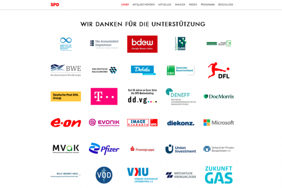 Wenn man dann auf der Parteitagsseite der SPD liest, dass sich die Partei für das Parteitagssponsoring von Pfizer und Microsoft bedankt, dann drängen sich einem Fragen auf.